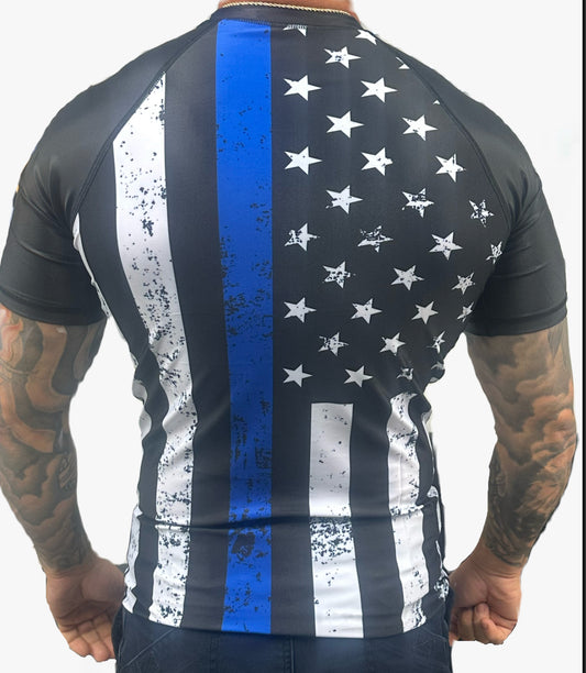 Thin Blue Line Flag Rash Guard – Short Sleeve